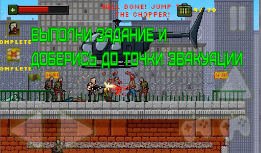 Перепрыгивая с одного балкона на другой или с крыши на крышу, герою необходимо достичь самой высокой точки, где его будет жать вертолет. Если все задания выполнены игроку следует запрыгнуть в вертолет и эвакуироваться для выполнения следующего задания.