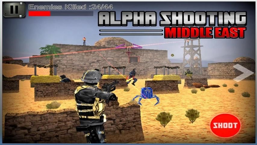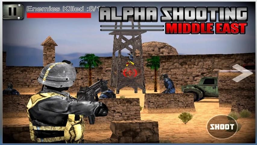 Альфа Стрельба Ближний Восток 3D игра военно моделирование, основанное на среднем east.It это тактический шутер от третьего лица, в котором вы играете роль спецназа оперативно поставлена задача проведения различных миссий.