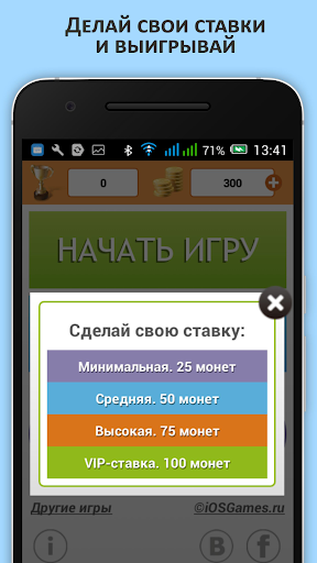 При онлайн-состязании вам сначала нужно сделать ставку и подождать пока приложение найдет вам соперника. Все поединки очень скоротечны, состоят из пяти раундов и длятся не дольше 1 минуты. Выигрывает тот, кто ответил на большее количество вопросов, а если оба игрока дали одинаковое количество правильных ответов, победитель определяется по времени.