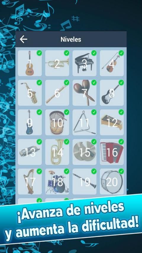 Скачать "Угадай музыкальный инструмент", свободную игру, которая проверяет ваши знания о мире музыки, угадывая имя каждого инструмента в фото.