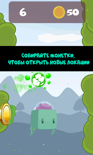 👽Не расстраивайтесь, если вы промахнетесь, ведь у пришельца будет время чтобы исследовать места на Земле! Собирайте монетки и открывайте новые локации.