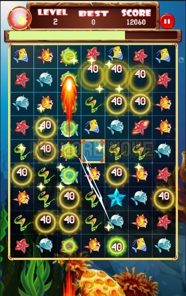 - Матч 5 рыба может выиграть изменения цвета моллюсков и 2 светильников.
