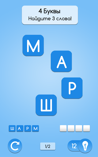 Составьте слово путем последовательного нажатия на буквы или непрерывного перемещения пальца от одной буквы к другой.