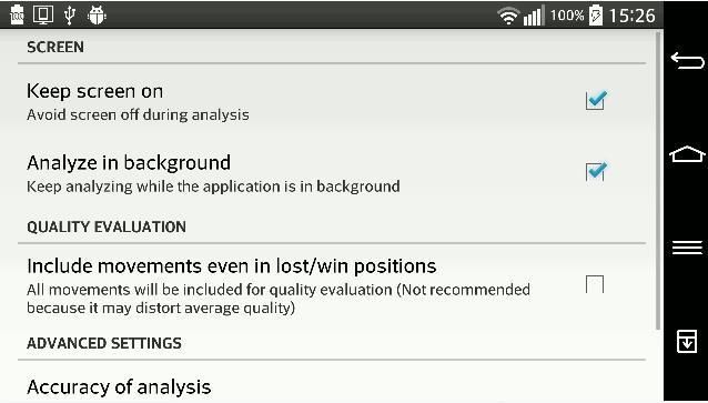 Во время фазы анализа можно взаимодействовать с игровой доски и движется, будучи обе части синхронизированные по умолчанию. В любое время анализ может быть прервана и возобновлена позднее без потери данных. Кроме того, можно анализировать в фоновом режиме или даже тогда, когда экран выключен.