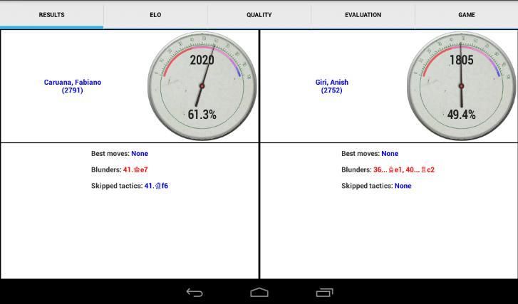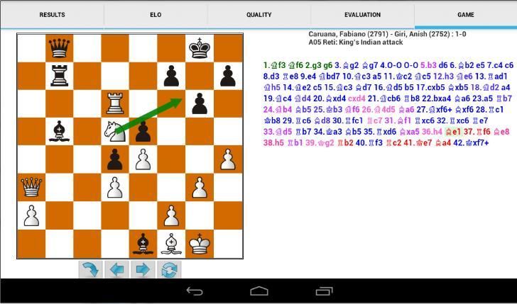 Проанализируйте свои игры является ценным инструментом для каждого шахматиста, который должен знать его реальную силу воспроизведения. Это приложение сравнивает ходы играли в игры с лучшими ходов, что сильный двигатель, как Stockfish бы сделать, и он вычисляет процент качества и приблизительное рейтинга ЭЛО на протяжении всей игры.
