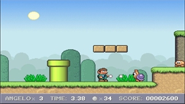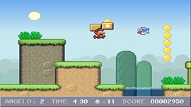 Super Angelo is a platform game in the style of Mario. Run and jump through levels, collect power ups, destroy enemies and rescue the princess!