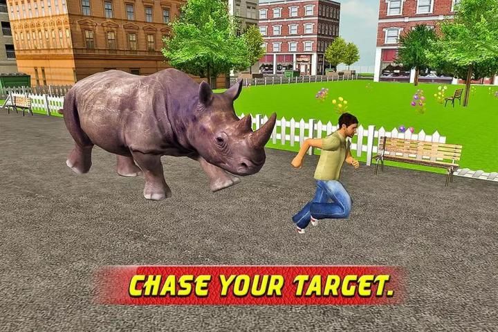 Носорог очень зол был сбежал из jungle.Now это на свободные и не волнует, что это в way.Play как носорог и наслаждаться создают хаос.