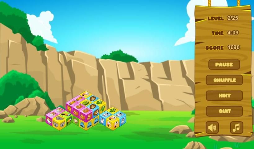 Освободите животных застряли в кубов в этой милой и веселой маджонг пасьянс куба игры, животных Кубики!