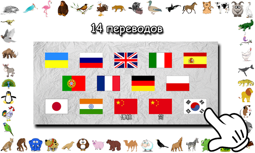 Игра Звуки животных переведена и озвучена на 14 языках: украинском, русском, английском, итальянском, испанском, португальском, французском, немецком, польском, японском, хинди, традиционном китайском, упрощенном китайском, корейском.