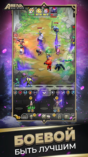 Arena Allstars - пошаговая стратегическая игра, в которой вы сражаетесь с семью противниками в эпической битве в реальном времени. Если вы хотите быстрый матч, выберите режим Teamfight Co-Op и победите своих противников менее чем за 10 минут. Составьте свою команду, реализуйте стратегию на высшем уровне и постарайтесь выжить! Соревнуйтесь в ежемесячных турнирах, чтобы заработать награды и подняться в более высокий ранг в Arena Allstars.
