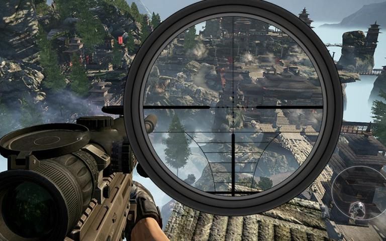 Используйте свой снайперский прицел прицелиться на врагов с расстояния.