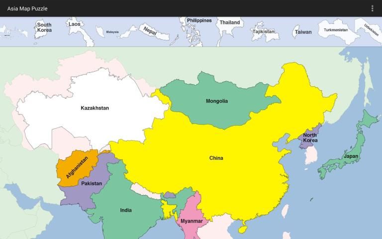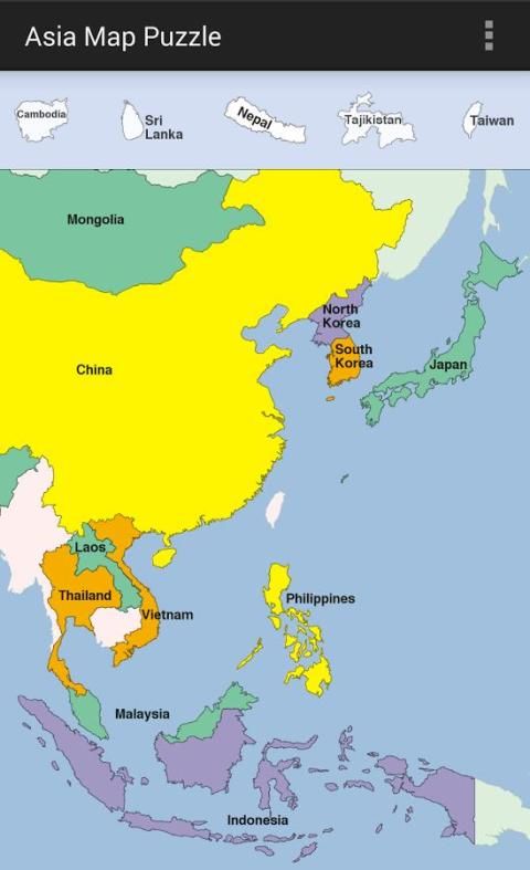 Это приложение представляет собой пазл из Азии, где каждая часть является форма стране. Перетащите и зафиксировать детали на место. Ваш прогресс будет сохранен как вы блокируете штук. Если вы выходите из приложения и перезапустить, Ваши запертые штук восстанавливаются.