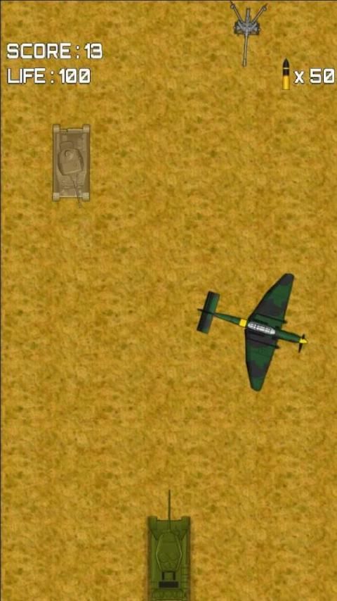 2.Если касании экрана вниз в направлении, чтобы напасть, башенка будет rorate, и танк может атаковать