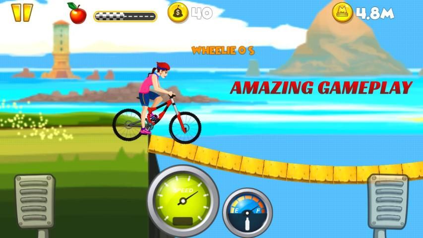 BMX гонка в 2017 году альпинист Рискованного путешествие и велосипедные подвиги шоу. Запустите цикл над негладкой дорожкой и доказать, что вы горный король. Ваш путь украшен монет и других предметов, имеющих балл. Собирайте монеты и яблоки с вашим путем и усилением баллов, чтобы получить другие стимулы. Наслаждайтесь гладкой контроль полной скорости езды цикла по неожиданному климату. Способ предназначен для создания максимальных возможностей аварий. Сверхвысокая скорость и невнимательность может маршрут вы вниз, и это вызовет провал игры. Держите цикл плотно и катя быстро идти и далекая область. Мосты между гор плюс точек, чтобы поймать пользователей. Это также случайные элементы, но ваши мозговитые шаги покорит вас.