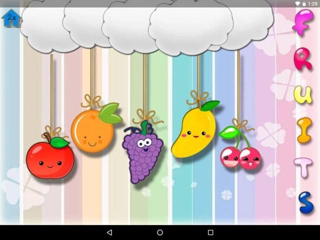 # 5: Ясно фрукты: Узнайте имена фруктов, играя с висящими фруктами и алфавитов.