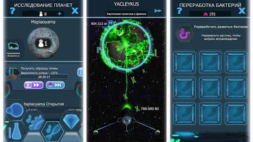 Станьте межгалактическим магнатом смертоносных бактерий и подчините себе Вселенную! Эта idle-игра позволит Вам отправиться в уникальное космическое путешествие. Выращивайте и разрабатывайте новые бактерии с улучшенными характеристиками. Мы приглашаем Вас попробовать свои силы в idle-стратегии с лучшим геймплеем и уничтожить как можно больше планет!