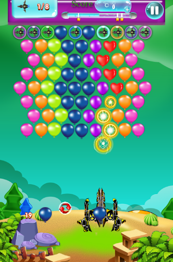 Нажмите, где вы хотите стрелять из воздушных шаров. Сгруппируйте 3 или более воздушных шаров, чтобы они взорвались