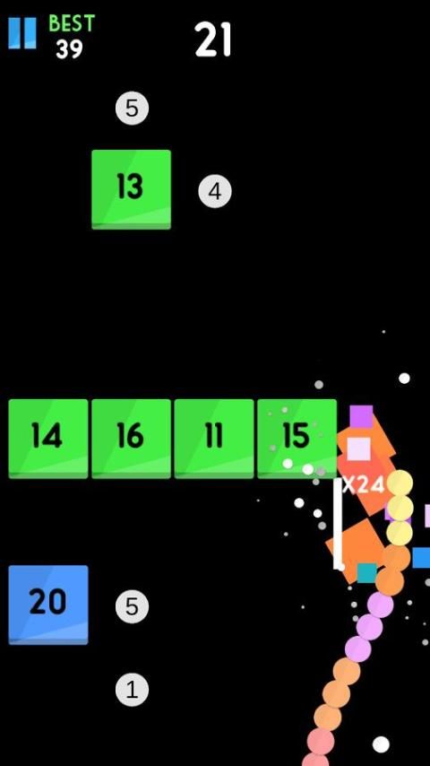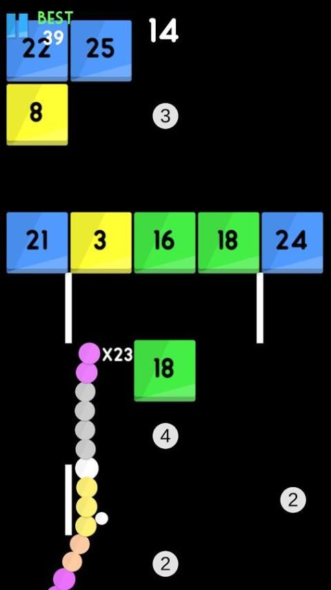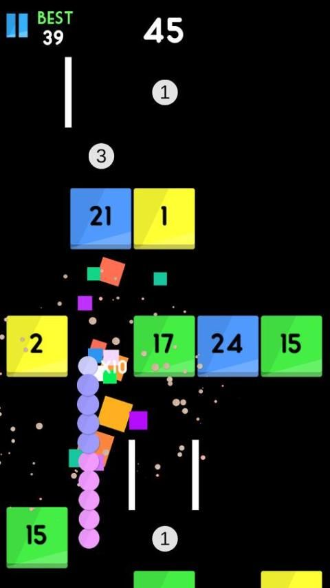 В балах против блоков вы можете провести палец, чтобы направлять змею красочных шаров и разбить блоки.
