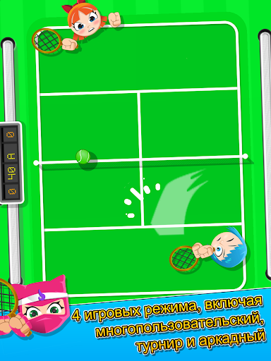 Бросьте вызов друзьям – режим игры двух игроков на одном устройстве обеспечит вам долгие часы веселого тенниса.