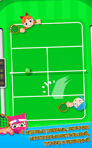 Простое управление делает эту теннисную игру веселой и увлекательной.