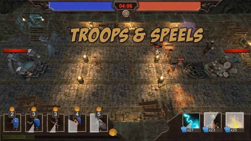 Введите Arena! Играть в игру Battle Arena: Warfare Clash, один из самых веселых, сложных и увлекательной стратегии игры. Сбор и обновление десятки золотых, войск, карт и заклинаний, как вы know.From свои стратегии, строить свои войска и заклинания и бить всех орка и души противника в войне поле боя!