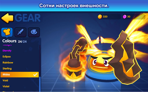 – Настройте облик своего желейки! Доступны сотни комбинаций обликов, оружия и украшений.