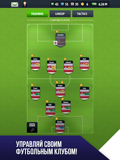 Управляйте своим футбольным клубом как настоящей футбольной звездой, завоевывайте уважение спортивных СМИ и станьте лучшим футбольным менеджером своего времени. Сделайте так, чтобы сторонники вашей футбольной команды гордились!