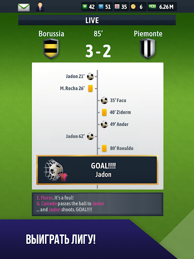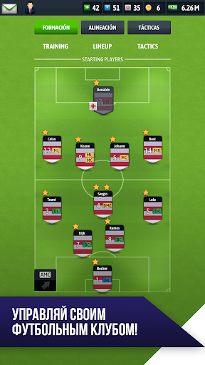 Как только у вас появятся игроки, пришло время настроить тактику нападения и выстроить свою оборонительную стратегию. Подготовьте свою футбольную команду как можно лучше перед каждым матчем и выиграйте премьер-лигу.