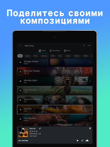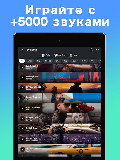 Записывайте секвенции несколькими нажатиями, используя звуки, созданные профессионалами со всего мира. Легкая визуализация инструментов на каждом из пэдов.