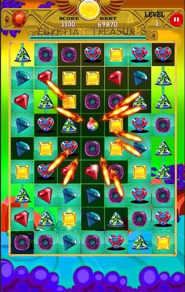 Bejeweled Сокровища Легенда захватывающий матч-3 игра-головоломка. Есть много сумасшедших головоломок, которые создаются из красивых драгоценных камней. Это захватывающая игра для всех. Привыкание геймплей основан вокруг сопоставления трех или более драгоценных камней одного и того же цвета.