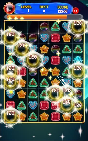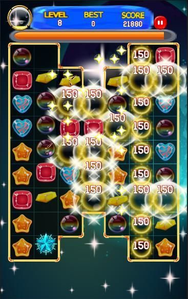 3: Сделайте драгоценности звезды до последней строки, чтобы пройти уровень.