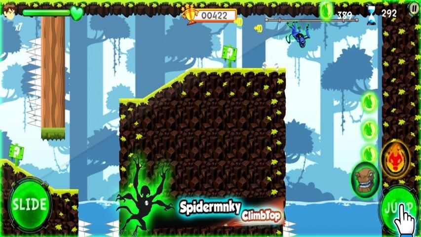button Jump : jump with Spidermonkey Super Ben jumping ten!