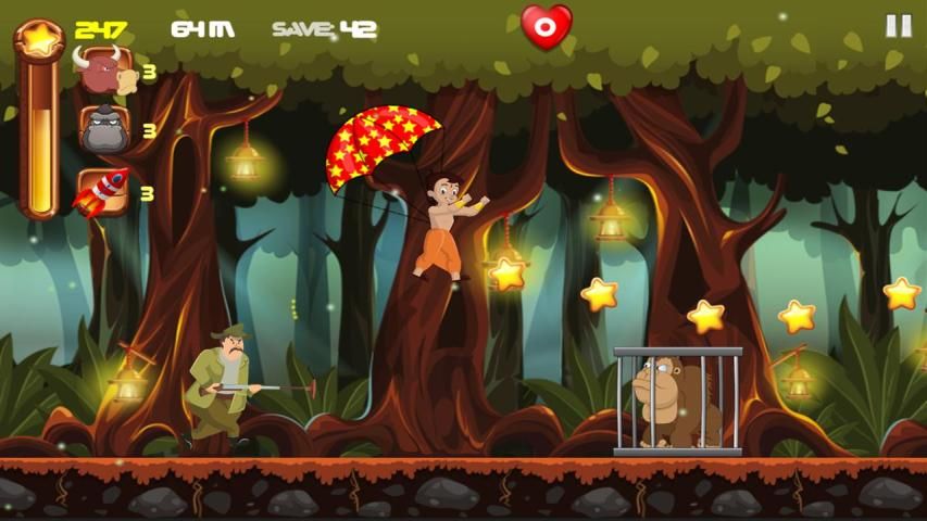 В джунглях острова Run, Bheem в спешке, чтобы спасти всех друзей животных, так что он будет продолжать работать так же быстро, как он может, вы должны вести его через несколько препятствий путем перемещения вверх, вниз, прыгая, лихой и скользя с парашютом , Вы должны убедиться в том, что охотник не ловит чот Бим, иначе вы не сможете спасти животное от продаются на черном рынке.