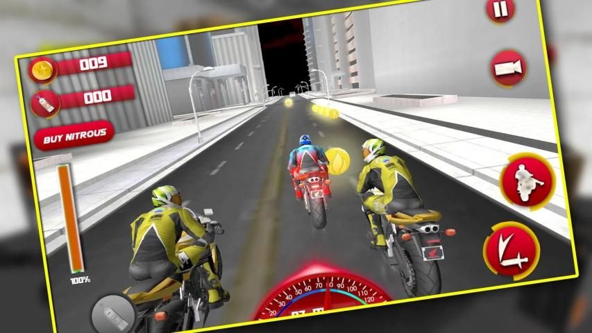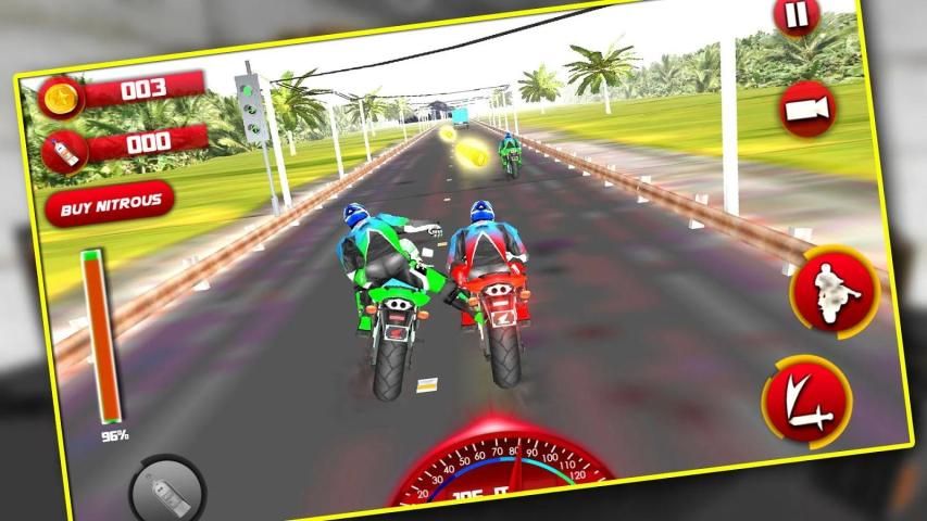 Perform acrobatic stunts with amazing super bikes in race arena. There will be frustrating obstacles, crazy traffic, firestorm vehicles and gangsters of crime city on your way. Beware of heavy traffic on road junctions as they can smash you pretty bad. Satisfy your passion and fever towards bike racing and stunts challenge. Earn cash by winning the races.