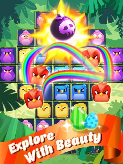 Милые сумасшедшие лица птиц заставят вас смеяться и влюбиться в них, желая большего. Все, что вам нужно сделать, - выровнять птиц одного цвета и смешного лица и посмотреть, как они взрываются. Как они говорят, «птицы одного и того же перья, всегда будут стекаться вместе».