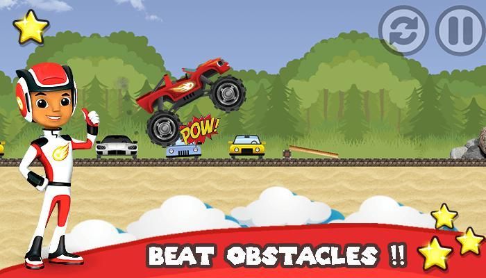 Blaze машины Грузовики: Monster Гонки это очень смешно и мило приключенческая игра, что вы должны играть. Пожалуйста, помогите Blaze Hero, он нуждается в вас.