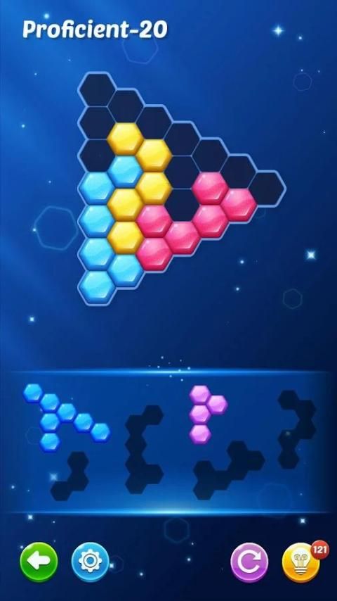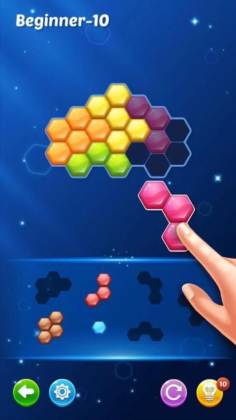 Перетащите и падение блоков, чтобы заполнить Hexa, чтобы выиграть и собирать звезды, чтобы разблокировать уровни.