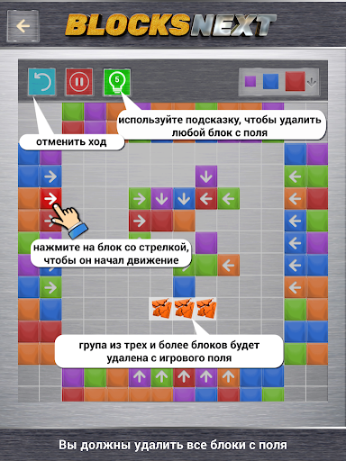 • можно воспользоваться помощью, чтобы удалить любой блок с игрового поля
