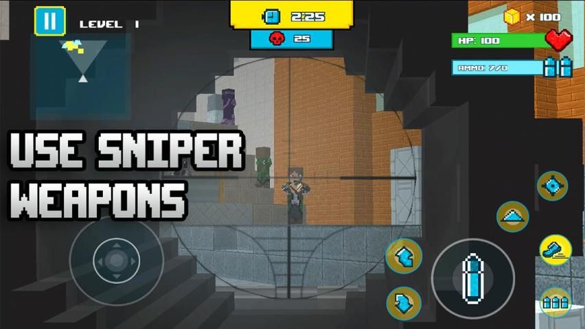Будьте готовы взять на себя агрессивных мобов и элитных снайперов в Block Wars Убийца снайпера. Увидеть и почувствовать действие в этом наиболее захватывающий мобильный игровой опыт. Перейдите препятствия и бороться за победу. Наслаждайтесь три уникальных боевых сценариев, где интенсивные бои отвечают стремительных действий для экстремальных плей-к-3D выжить пикселей мире.