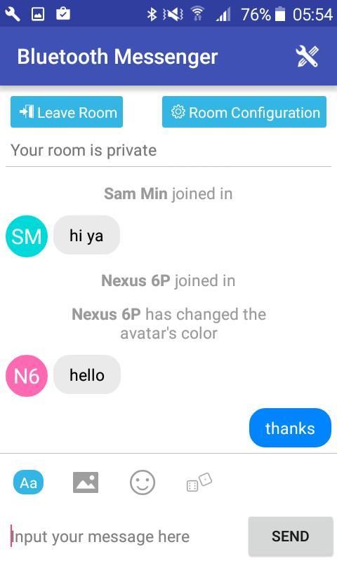 - Чат с несколькими друзьями в одной комнате (максимальное количество людей, зависит от того, сколько Bluetooth подключения устройства хозяина комнате может установить одновременно, как правило, это 8).