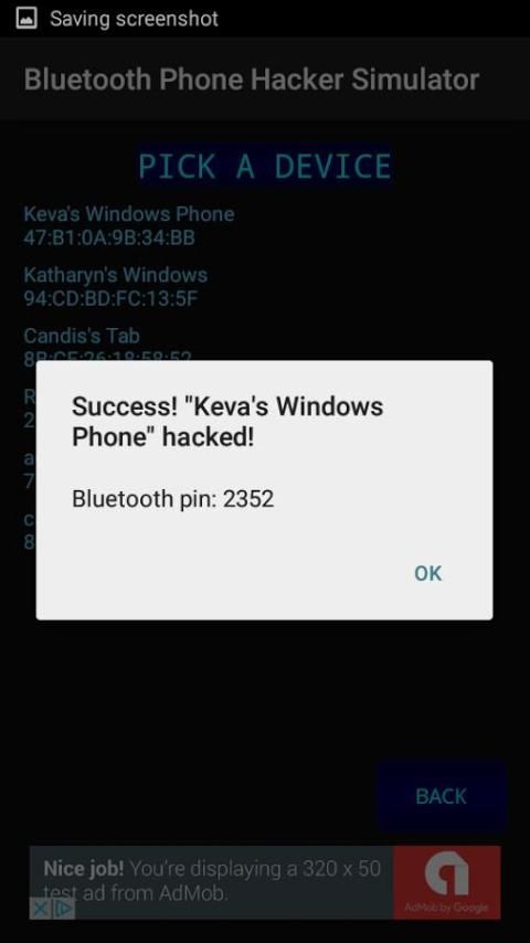 Вам будет представлен с "взломан" пароль от мишени (случайно сгенерированный Bluetooth номер контакта)!