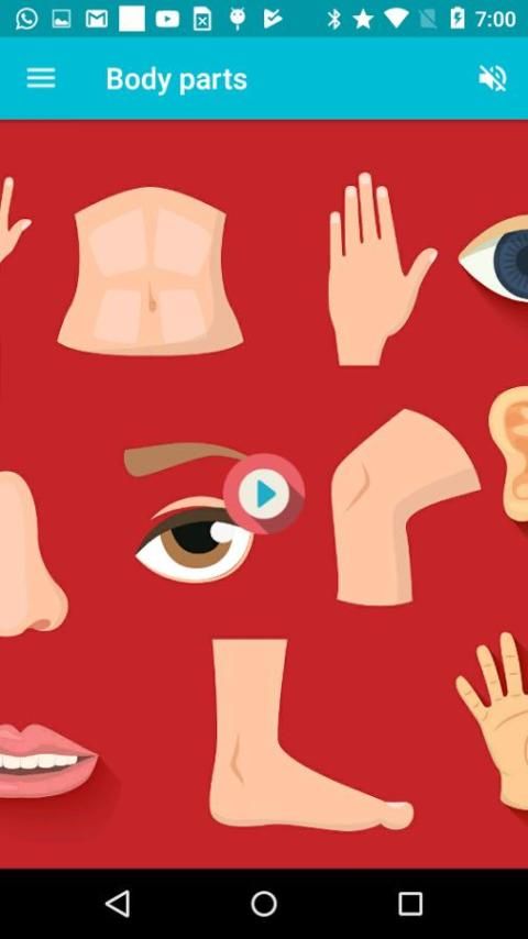 1.Learn -> Дополнительные части тела, видя фотографии и слушать их имена с произношением.
