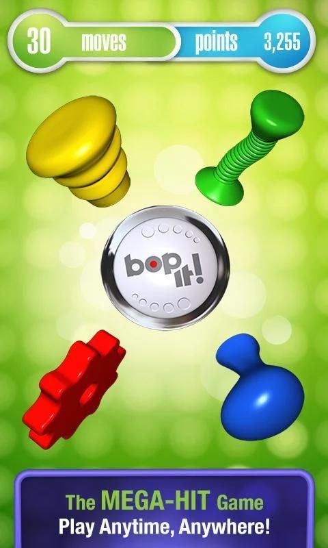 Bop It! выкрикивает команды, вы быстро реагировать! Играть с помощью сенсорного управления, чтобы боп его, сжать его, вытащить его и более или использовать устройство, чтобы крутить, спина и петь стащить X-Moves для бонусных баллов!