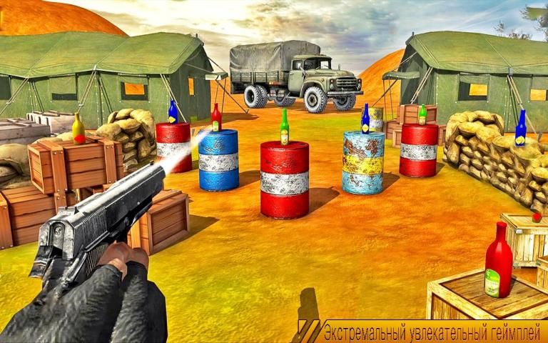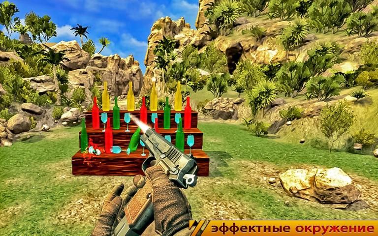Пришло время показать свои навыки стрельбы по раздавливанию бутылок. Эта настоящая игра с выстрелом в бутылки - одна из лучших игр для игр с бесплатной бутылкой. Взрыв бутылок с помощью пистолета. Бутылка настоящая стрельба - бесплатная казуальная игра с экспертными и сложными уровнями. Вы можете стрелять в любую точку или кого угодно, но главная цель - стрелять в бутылку. Если вы пропустите выстрел из бутылки, не беспокойтесь, потому что у вас есть дополнительные пули. Наслаждайтесь пулей замедленного действия и разрывом бутылки. Покажите свою любовь к новой игре с шутер-бутылочкой. Станьте экспертом-шутером, ломая и снимая бутылки в этой смертельной игре. Эта игра бутылка стрелять цель 3d позволяет вам прицелиться, установить цель, поразить бутылку и сломать стекло.