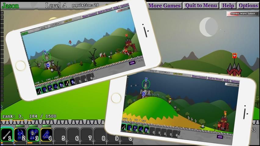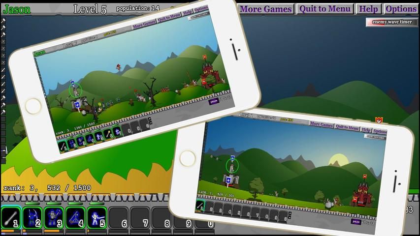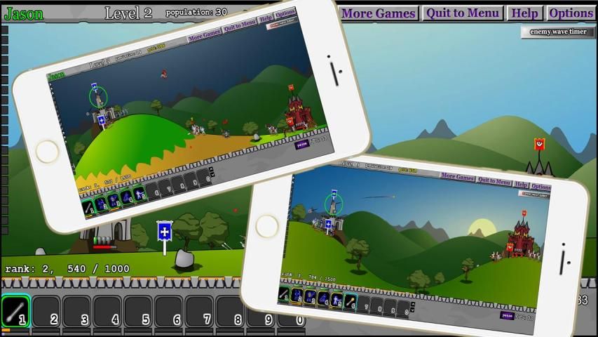 Пальцы скользят для регулировки угла стрельбы врагов, модернизировать производство солдат, очень интересно!