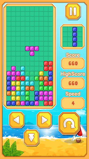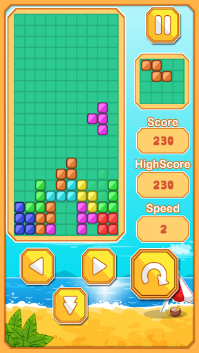 Легко и знакомо играть.Вы контролируете Tetrominos падают в борту (10х20).Управление влево, вправо и поверните блок, чтобы создать и уничтожить полные линии на горизонтальном экране.