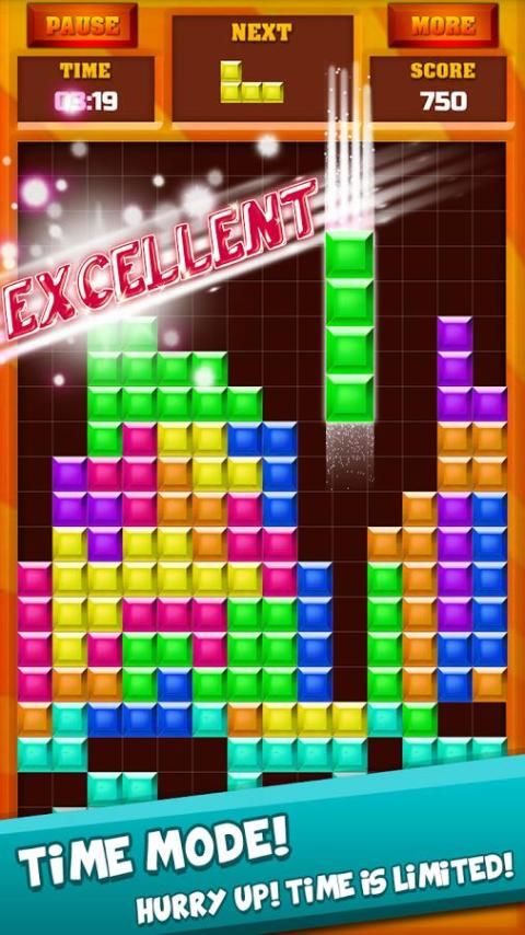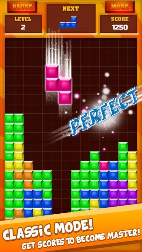 До тех пор, как вы нажмете сбоку или вертикально и соединены в линию могут быть устранены и получил баллы. Игра заканчивается, когда кирпичные блоки накапливаются и достигают верхней части экрана
