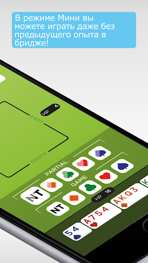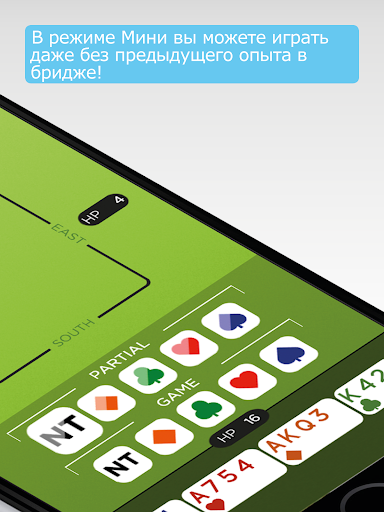 В режиме Мини вы можете играть даже без предыдущего опыта в бридже!