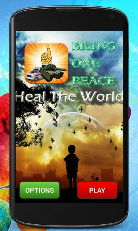 BRING ONE PEACE is the best game for bringing peace to the world. let us tell the kids that we don't have to do war for any problems. we have to bring peace and help each other as human. Heal the World! we need to make better future for the world. That's why this game is using two main icon, these are War Tank and Ambulance. War Tank is to Explain that we have to remove war from the world. The Ambulance is to explain that we have to help each other, to Heal The World. so, let the ambulance do the work and don't disturb the Ambulance. Features: - High Score with Worldwide Leaderboard. - Nice Sounds. - Nice User Interfaces. - Kid's Brain is Learned about Peace. - Kid Brain Games. How To Play: - Tap The Tank. - Let the Ambulance. - Get Highscore. Enjoy this game, Let's Bring Peace like ONE PIECE!