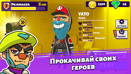 Соберите команду уникальных героев: солдат, танк, ниндзя и другие. У каждого свои характеристики, которые помогут в бою!